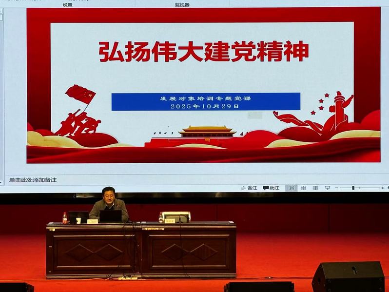 10月29日下午,校党委常委、副校长张桂华在新长校区大学生活动中心为2025年秋学期293名党员发展对象讲授“弘扬伟大建党精神”专题党课。
